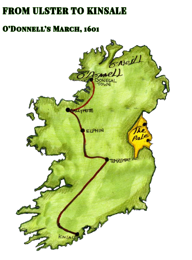 Marked the effective end of the old Gaelic order and its traditional patronage. In 1601 a Spanish army of 4,800 men landed in Kinsale in support of Hugh O’Neill and Red Hugh O’Donnell, two clan leaders/Earls from Ulster who had successfully driven the English from their lands. However, Kinsale is in Co. Cork, an entire island awy from Ulster. The English laid seige to the Spanish forces, and O’Neill and O'Donnell marched south in an attempt to break the siege. When they engaged the English, the battle lasted only an hour. Th Irish lost 1,200 men, the English only 20. The Irish scattered and the Spanish surrendered.