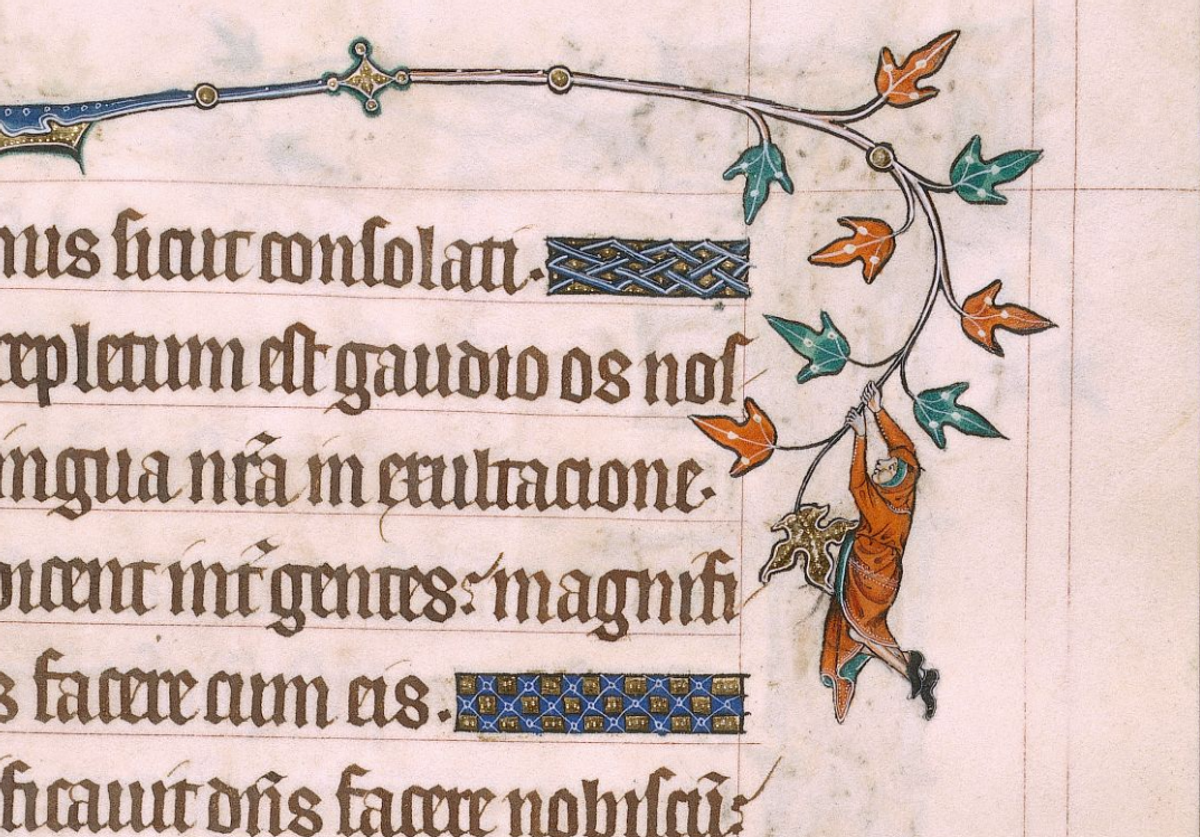 Marginalia, the drawings and other marks made along the edges of pages, are a far more varied lot. This grouping also has two major categories: 1) illustrations intended to accompany the text, and 2) annotations made by scribes, owners, and readers. Both types can be serious, playful, fantastic, disgusting, or any state in between.
